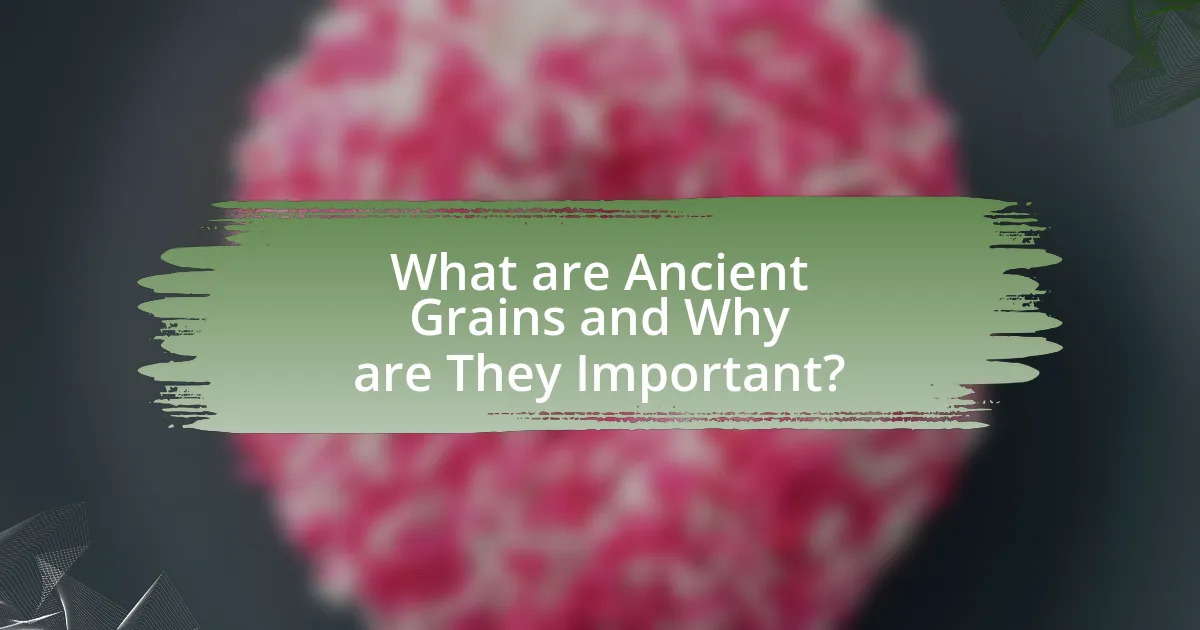 Ancient grains are cereal grains that have remained largely unchanged over the last several hundred years, including varieties such as spelt, kamut, quinoa, and farro. These grains are important because they offer nutritional benefits, including higher protein, fiber, and micronutrient content compared to modern grains like wheat. For example, spelt contains more protein and fiber than common wheat, making it a healthier choice for many diets. Additionally, ancient grains often have a lower glycemic index, which can help in managing blood sugar levels. Their cultivation also promotes biodiversity and sustainable agricultural practices, as they are typically more resilient to environmental changes.