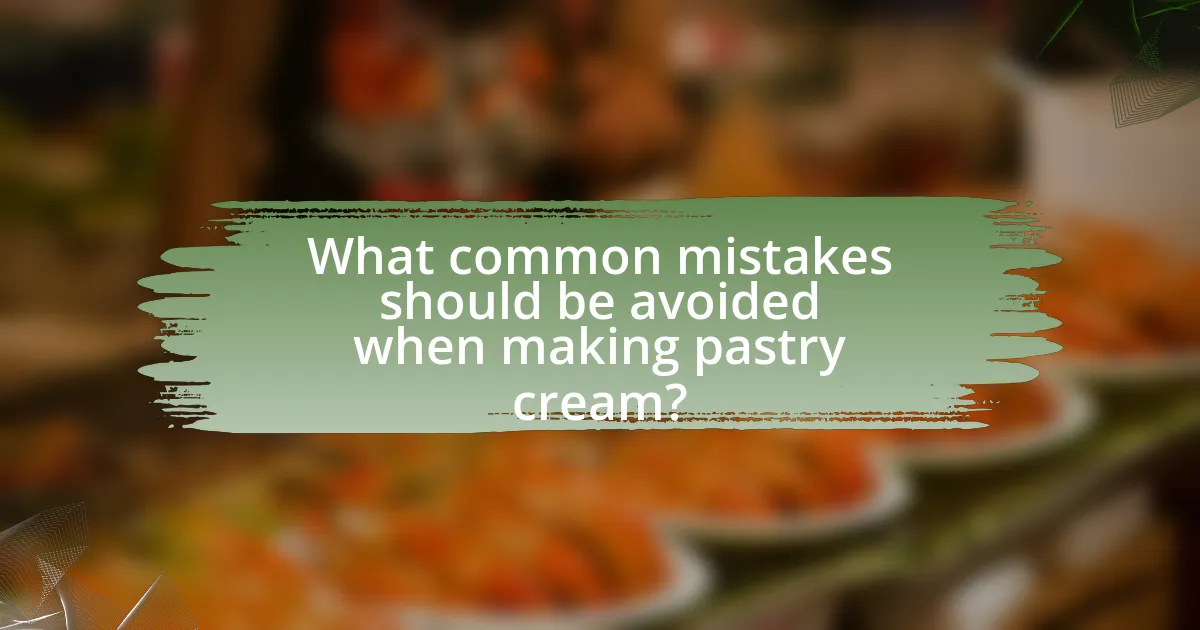 Common mistakes to avoid when making pastry cream include not tempering the eggs properly, which can lead to curdling, and failing to whisk continuously while cooking, resulting in uneven thickening. Additionally, using low-quality ingredients can negatively impact flavor and texture, while not allowing the cream to cool adequately before using can cause it to become too runny. Proper technique and ingredient quality are essential for achieving the desired consistency and taste in pastry cream.